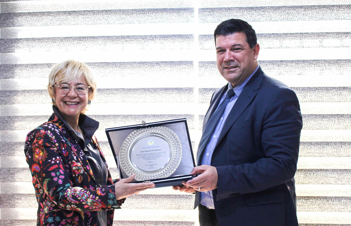 DAÜ Rektörü Prof. Dr. Hasan Kılıç ile DAÜ Akademik İşlerden Sorumlu Rektör Yardımcısı Prof. Dr. Osman Karatepe’nin de katıldığı etkinlik sonunda Prof. Dr. Hasan Kılıç tarafından katkı ve desteklerinden dolayı Av. Arb. Feyzioğlu’na tabak takdim edildi.